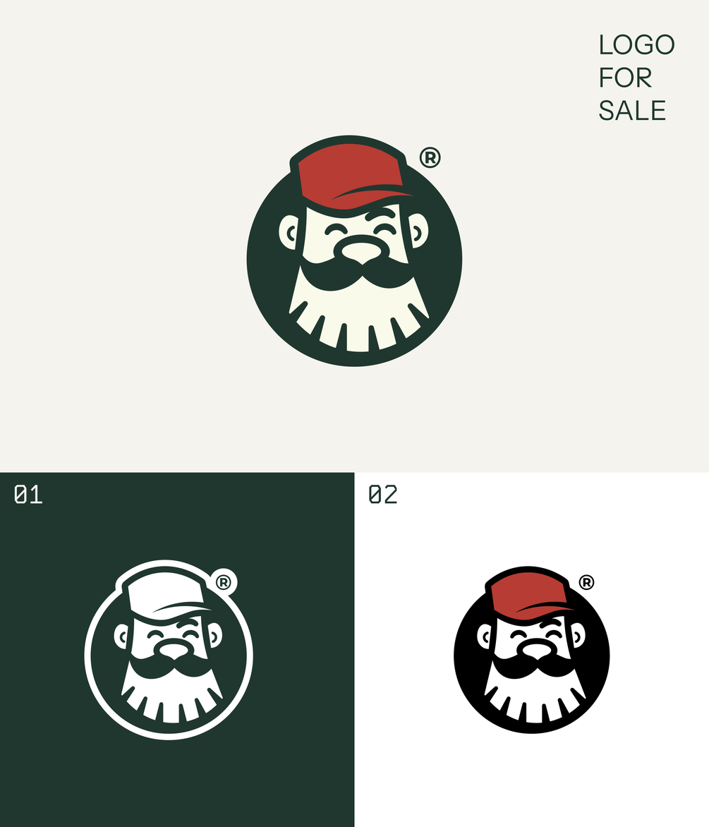 This logo features a mascot of a smiling bearded man wearing a cap, designed in a minimalist and friendly style. It includes both color and monochrome versions, making it versatile for various applications. The design conveys reliability and warmth