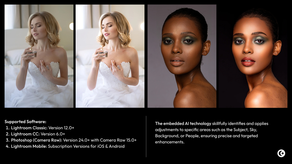 AI-Powered Presets are fully compatible with the latest versions of of Adobe Lightroom and Photoshop.