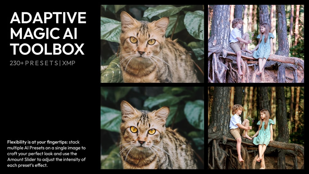 Featuring 230+ Adaptive AI Presets for localized retouching of portraits, landscapes, skies, and more. From changing the entire mood of an image to enhancing the natural beauty. This all-in-one bundle helps you edit faster, dream bigger, and create work that feels uniquely yours.